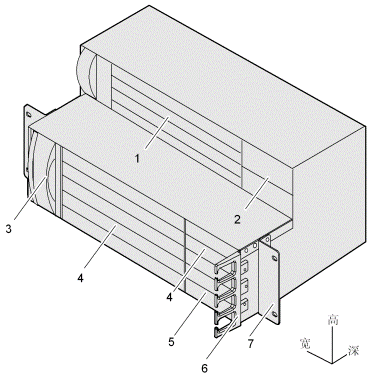 5. 輔助接口板區(qū) | 6. 走線架 | 7. 掛耳 | - |