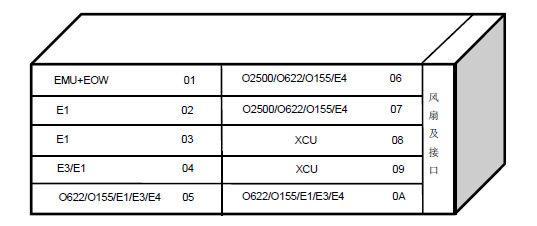 整個設備高度為3U,寬和深分別為:450mmX350mm。每個槽位25mm。設備的前面板,左邊為10個槽位區(qū),右邊為風扇接口板,在左邊的槽位區(qū)分為2列5排。