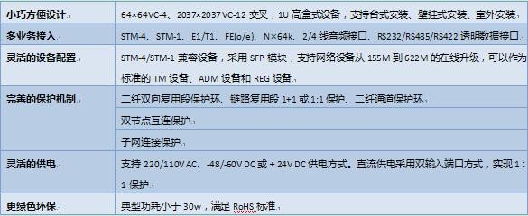 3、 強(qiáng)的交叉能力:提供64×64VC-4的高階交叉能力,2037×2037 VC-12的低階交叉能力 。