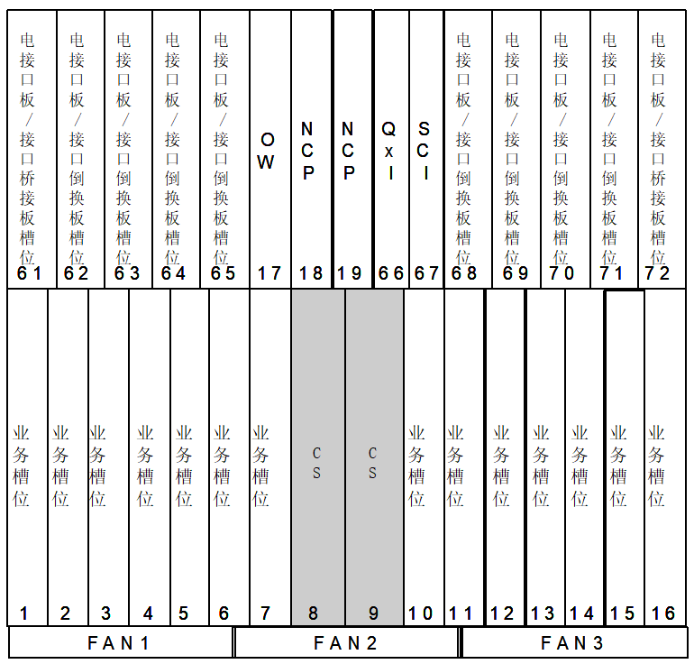 3.風(fēng)扇插箱:風(fēng)扇插箱位于子架底部,用于對(duì)設(shè)備進(jìn)行強(qiáng)制風(fēng)冷散熱。